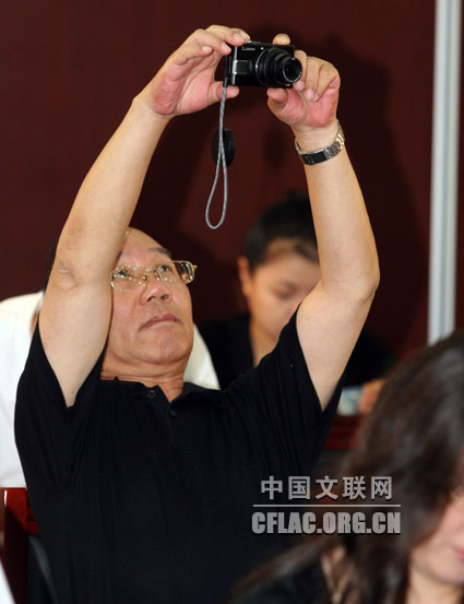 7月18日上午,纪念中国文学艺术界联合会成立六十周年座谈会在京召开。图为中国摄影家协会分党组书记、驻会副主席李前光在拍照。中国文联网