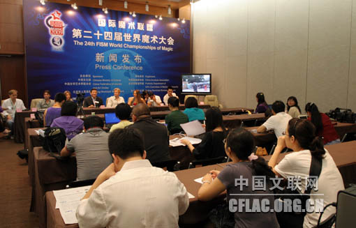 7月28日,2009年北京世界魔术大会举办期间第三次新闻发布会举行。图为发布会现场。中国文联网 彭宽摄影报道