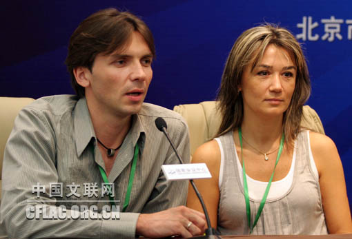 7月28日,2009年北京世界魔术大会举办期间第三次新闻发布会举行。图为梦幻双人组合在发布会上回答记者提问。中国文联网