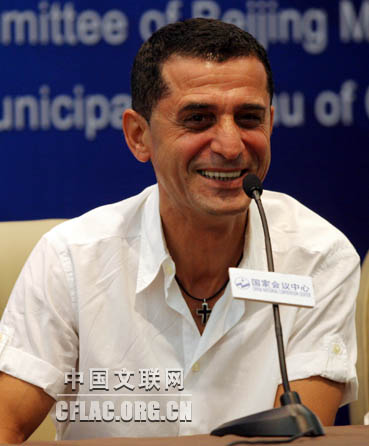 7月28日,2009年北京世界魔术大会举办期间第三次新闻发布会举行。图为著名魔术师乔哥斯在发布会上回答记者提问。中国文联网