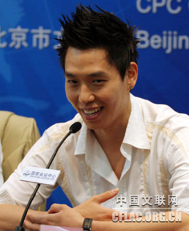 7月28日,2009年北京世界魔术大会举办期间第三次新闻发布会举行。图为奥运冠军杨凌参加发布会。中国文联网