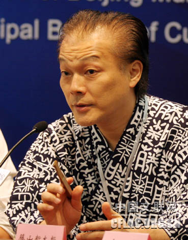 7月28日,2009年北京世界魔术大会举办期间第三次新闻发布会举行。图为著名魔术师藤山新太郎在发布会上回答记者提问。中国文联网