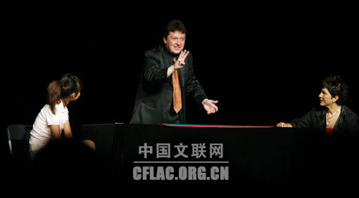 7月28日晚,2009年北京世界魔术大会近台魔术嘉宾为参加大会的人员表演了精彩的节目。图为瑞典魔术师雷纳德·格林表演节目。中国文联网 彭宽摄影报道