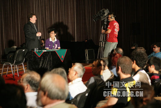 7月30日下午,参加2009年北京世界魔术大会的魔术师亨利·伊万斯兹举办了一场魔术讲座,讲座吸引了数百名参会者。图为讲座现场。中国文联网 孟祥宁摄影报道
