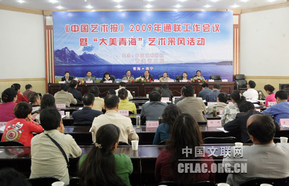 8月27日,《中国艺术报》2009年通联工作会议在充满活力的高原城市青海西宁开幕。由中国艺术报社、青海省文联主办的“大美青海”艺术采风活动同时启动。青海省副省长吉狄马加,中国文联党组成员、书记处书记廖奔,青海省文联党组书记、主席樊光明,中国艺术报社总编辑李树声,中共青海省委宣传部副部长周贤安,青海省文联党组成员、副主席张民、马有义,以及来自全国24个省、市、自治区文联的领导和驻站记者,与“大美青海”艺术采风团的陈醉、张桐胜、丁杰、张文华、彭利铭、李义兴等艺术家们一道欢聚在美丽壮阔的青海湖畔,共叙真挚友情,共商报社发展大计,共话文艺事业繁荣发展新篇章。