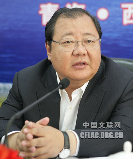 8月27日,《中国艺术报》2009年通联工作会议在充满活力的高原城市青海西宁开幕。图为青海省副省长吉狄马加在开幕式上讲话。中国文联网