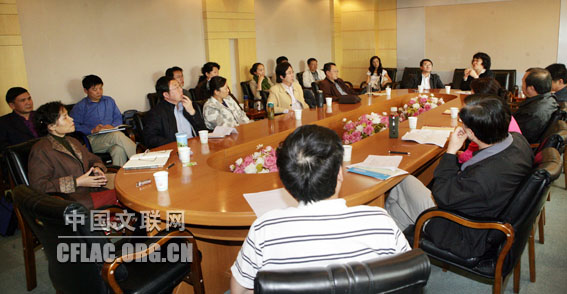 8月27日,《中国艺术报》2009年通联工作会议在充满活力的高原城市青海西宁开幕。当天下午,通联工作会议座谈会召开。图为座谈会现场。中国文联网