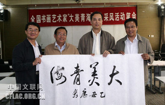 8月27日,《中国艺术报》2009年通联工作会议在充满活力的高原城市青海西宁开幕。图为全国书画艺术家“大美青海”艺术采风活动笔会现场。中国文联网 孟祥宁 摄