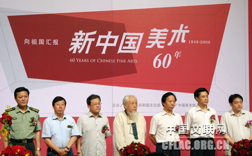 为隆重庆祝新中国60华诞,向祖国和人民汇报60年来美术创作的成果,由文化部主办、中国美术馆承办的“向祖国汇报——新中国美术60年”展览,于8月21日在中国美术馆开幕。中国文联党组成员、副主席冯远,文化部副部长王文章,中国文联副主席、中国美协主席刘大为,文化部艺术司司长董伟、副司长刘中军,解放军总政艺术局副局长李翔,以及著名画家侯一民、中国美协副主席何家英等出席展览开幕式。开幕式由中国美协副主席、中国美术馆馆长范迪安主持。
