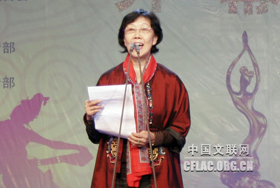 9月23日,由中国文联、贵州省人民政府主办,中国舞协、贵州省委宣传部、贵阳市人民政府主承办的第七届中国舞蹈“荷花奖”民族民间舞大赛在贵阳拉开帷幕。图为中国文联副主席、中国舞协主席白淑湘致开幕辞。中国文联网 彭宽 摄