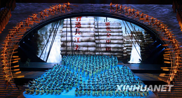 9月28日晚,庆祝中华人民共和国成立六十周年大型音乐舞蹈史诗《复兴之路》在北京人民大会堂演出。这是舞蹈《打过长江去》。新华社记者 庞兴雷 摄