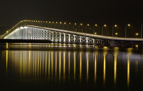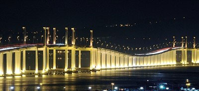 友谊大桥灯饰放亮宛如海上长虹