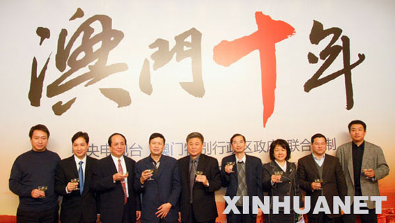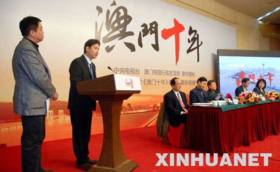 当日,大型电视纪录片《澳门十年》首映式暨新闻通气会在北京举行。该片由中央电视台和澳门特别行政区政府联合摄制,定于2009年12月11日起在中央电视台一套黄金时间播出。新华社发