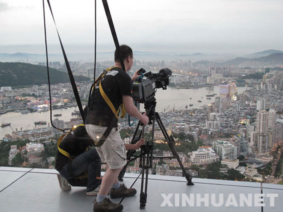 这是《澳门十年》摄制组在澳门拍摄的工作照(2009年4月摄)。