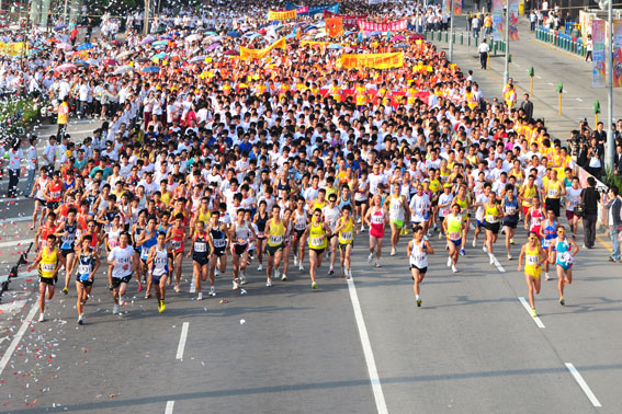 《十月一日国庆长跑起步》 黄明辉 2008年10月1日