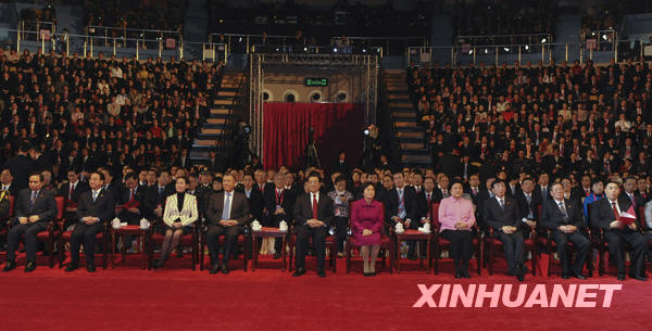 12月19日,国家主席胡锦涛在澳门出席庆祝澳门回归祖国10周年文艺晚会。新华社记者 李学仁 摄