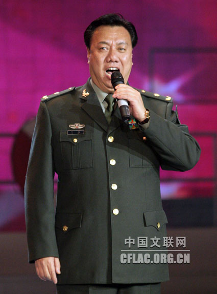 12月31日下午,中国文联等组织艺术家到海军大连舰艇学院开展2010年“送欢乐 下基层”慰问活动。图为徐沛东演唱歌曲《得民心者得天下》。