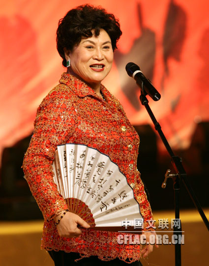 1月12日,由中国文联、中国曲协、中共湖北省利川市市委、利川市人民政府主办的“送欢乐、下基层”走进利川慰问演出活动在湖北省利川市举行。中国文联副主席、中国曲协主席刘兰芳,中国曲协分党组书记、副主席姜昆率领众多文艺家,为当地上千名观众奉献了一场主题鲜明、内容精彩的演出。图为著名节目主持人鞠萍主持此次演出。中国文联网 邱振刚 摄