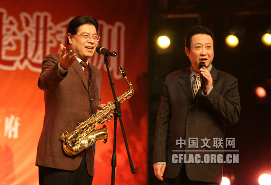 1月12日,由中国文联、中国曲协、中共湖北省利川市市委、利川市人民政府主办的“送欢乐、下基层”走进利川慰问演出活动在湖北省利川市举行。中国文联副主席、中国曲协主席刘兰芳,中国曲协分党组书记、副主席姜昆率领众多文艺家,为当地上千名观众奉献了一场主题鲜明、内容精彩的演出。图为陆明、许勇表演相声《音乐家》。中国文联网 邱振刚 摄