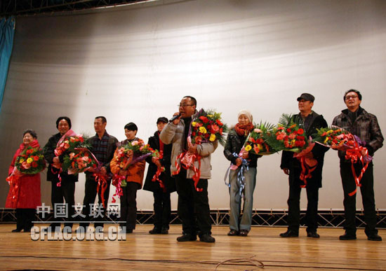 由中国文联、中国影协、广东省文联联合主办的“送欢乐、下基层”系列慰问活动于1月11日至14日在南粤大地的客家之乡河源市举行。11日晚,中国影协分党组书记、驻会副主席康健民带领影协的艺术家为河源的广大市民送上国产优秀影片《铁人》,中国影协副主席尹力带领《铁人》的主演、金鸡影帝吴刚与当地群众见面,陶玉玲、英壮、王霙、佟凡、高宝宝、赵越、丁柳元、郭虹等也出席演员见面会。图为见面会现场。中国文联网 张悦 摄