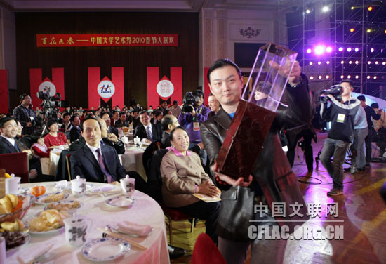 1月17日,百花迎春——中国文联2010春节大联欢在人民大会堂举行。图为演员与艺术家现场互动。中国文联网 孟祥宁
