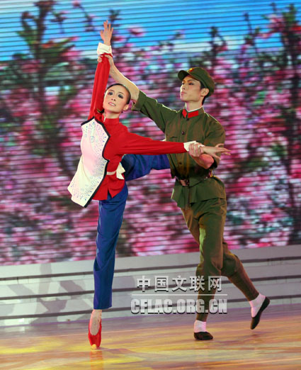 1月17日,“百花迎春——中国文学艺术界2010春节大联欢”在人民大会堂举行。图为芭蕾双人舞《沂蒙情深》。中国文联网 余宁 摄