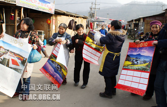 1月20日至22日,由中国摄影家协会副主席张桐胜带队,刘英毅、朱恩光、邓鹏承等摄影家组成的中国摄影家协会“送欢乐、下基层”小分队,与四川省文联党组副书记、副主席陈黔鲁带队的四川省摄影家协会慰问队伍,深入到“5·12”地震极重灾区的北川陈家坝乡、北川中学、绵竹棚花村、什邡蓥华镇、都江堰聚源中学等地,为地震灾区的人们拍摄全家福照片,与所到之地的乡亲们、同学们共同分享灾后重建的喜悦。图为什邡市蓥华镇的居民们拿到摄影年历分外高兴。邓风 摄