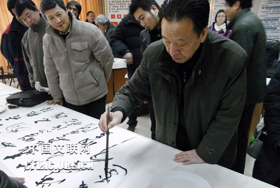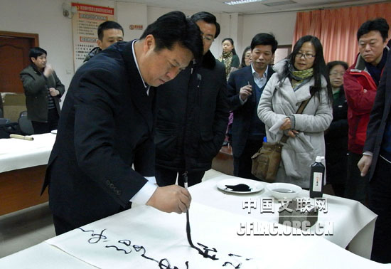2月7日,由中国书协主办,北京书协、解放军总政艺术局、中国书协中直分会、中国楹联学会协办的“送欢乐、下基层——中国书法进万家迎新春送春联活动”在北京市通州区大稿村举行。中国文联党组副书记、副主席覃志刚,中国书协主席张海,中国书协分党组书记、驻会副主席赵长青,中国书协副主席申万胜,中国楹联学会会长孟繁锦以及赵学敏、田伯平、苗培红、刘洪彪等书法家参加了本次活动。