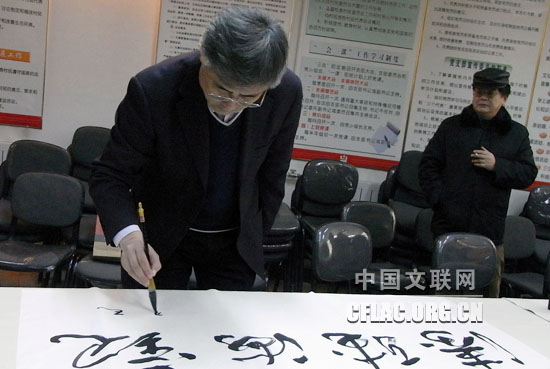 2月7日,由中国书协主办,北京书协、解放军总政艺术局、中国书协中直分会、中国楹联学会协办的“送欢乐、下基层——中国书法进万家迎新春送春联活动”在北京市通州区大稿村举行。图为中国书协分党组书记、副主席赵长青书写作品。中国文联网 张亚萌 摄