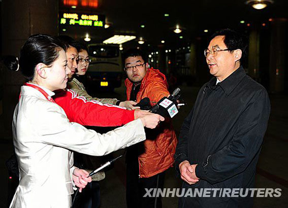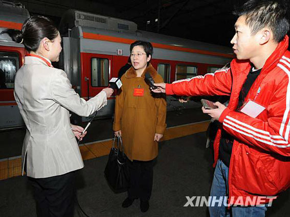 3月2日晨,来自河南省的全国人大代表乘坐K180次列车抵达北京西客站,成为首批抵京参加十一届全国人大三次会议的京外代表。这是毛杰代表接受采访。新华社记者 朱祥 摄