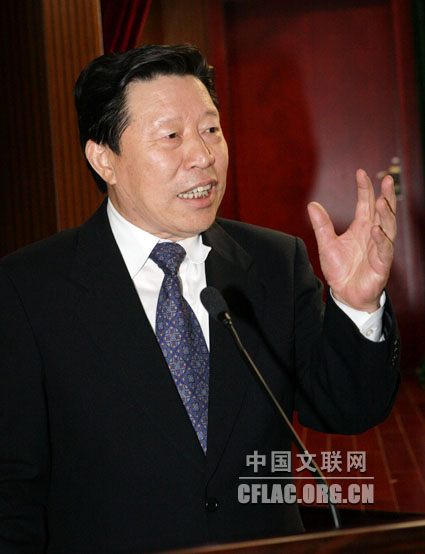 3月2日,2010年文艺界全国人大代表全国政协委员联谊会在中国文联新址中国文艺家之家举行。全国政协副主席、中国文联主席孙家正,中国文联党组书记、副主席胡振民,中国文联党组副书记、副主席覃志刚、李牧,中国文联党组成员、副主席冯远,文化部副部长杨志今及众多文艺界代表委员参加联谊会。图为孙家正致辞。中国文联网 孟祥宁 摄