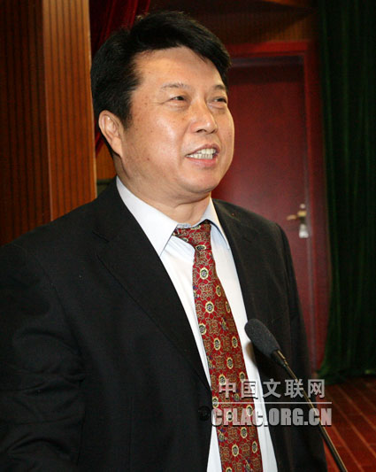 3月2日,2010年文艺界全国人大代表全国政协委员联谊会在中国文联新址中国文艺家之家举行。全国政协副主席、中国文联主席孙家正,中国文联党组书记、副主席胡振民,中国文联党组副书记、副主席覃志刚、李牧,中国文联党组成员、副主席冯远,文化部副部长杨志今及众多文艺界代表委员参加联谊会。图为胡振民通报中国文联2009年工作情况及2010年工作安排。中国文联网 孟祥宁 摄