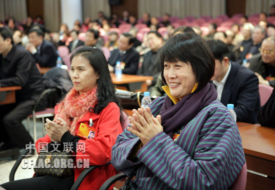 3月2日,2010年文艺界全国人大代表全国政协委员联谊会在中国文联新址中国文艺家之家举行。全国政协副主席、中国文联主席孙家正,中国文联党组书记、副主席胡振民,中国文联党组副书记、副主席覃志刚、李牧,中国文联党组成员、副主席冯远,文化部副部长杨志今及众多文艺界代表委员参加联谊会。图为联谊会现场。中国文联网 孟祥宁 摄