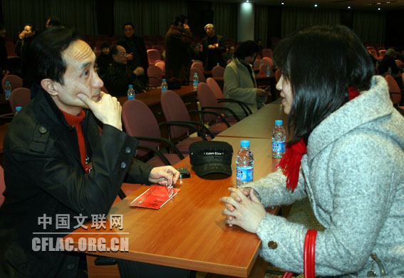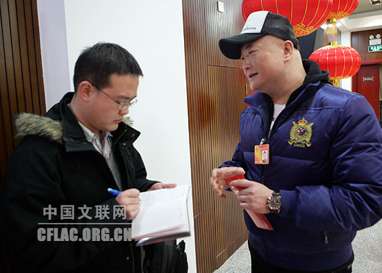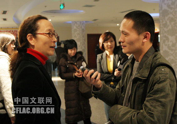 3月2日,2010年文艺界全国人大代表全国政协委员联谊会在中国文联新址中国文艺家之家举行。图为文艺界代表委员在联谊会上接受采访。中国文联网 余宁 摄 |