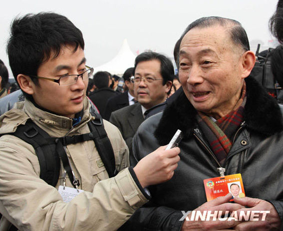 3月3日,全国政协委员梅葆玖在天安门广场接受记者采访。