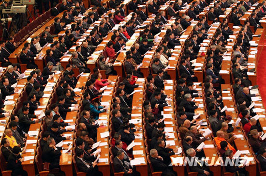 3月3日,中国人民政治协商会议第十一届全国委员会第三次会议在北京人民大会堂开幕。全国政协主席贾庆林代表政协第十一届全国委员会常务委员会向大会作工作报告。新华社记者 黄敬文 摄
