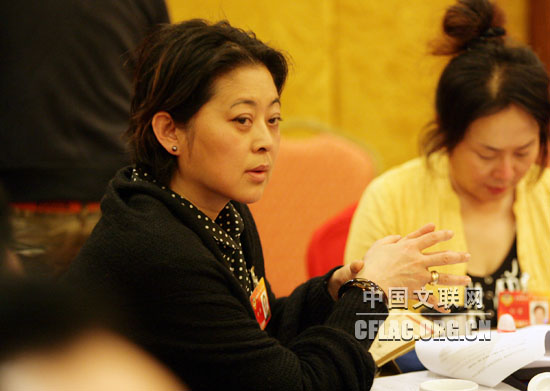 图为3月4日,倪萍委员在小组讨论会上聆听发言。 中国文联网 孟祥宁 摄