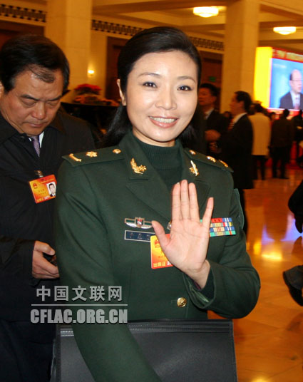 第十一届全国人民代表大会第三次会议3月5日上午在人民大会堂开幕。图为谭晶代表步入会场。中国文联网 余宁 摄