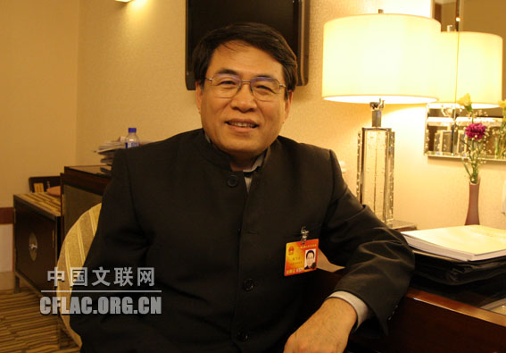 3月6日,杨飞云代表展望中国油画发展。中国文联 网余宁 摄