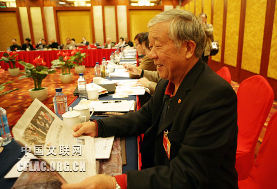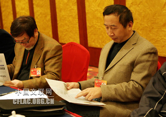 王成喜委员翻阅《中国艺术报》。中国文联网 孟祥宁 摄