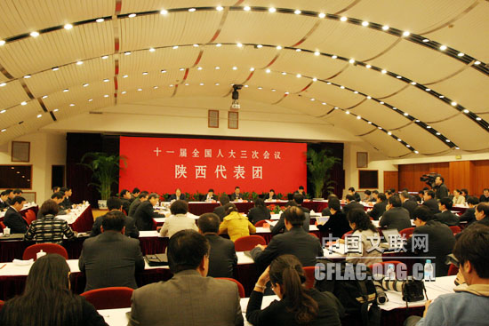 3月10日,陕西代表团召开全团会议。中国文联网 余宁 摄