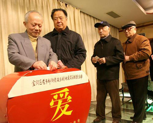 4月15日,苏州市金阊区老干部活动中心举行“金阊区老干部向青海省玉树地震灾区捐款”活动,共募集到善款36000元。新华社发(杭兴微 摄)