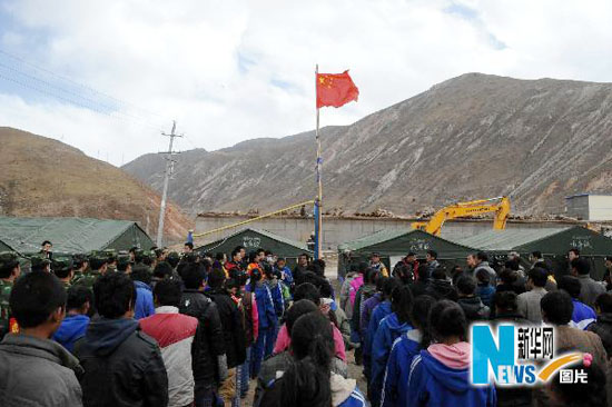 4月18日,青海省玉树藏族自治州第一民族中学师生举行复课仪式。