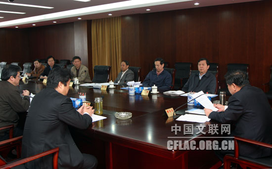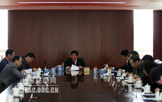 4月19日,中国文联党组召开会议,就援助青海玉树地震灾区进一步部署抗震救灾工作。图为会议现场。中国文联网 余宁 摄