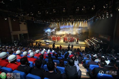 《永不放弃 向生命致意》青海卫视抗震救灾特别节目于19日19点40分揭开序幕,众多明星为公益赈灾一齐努力。成龙、李连杰、谭咏麟、李宇春、田亮、谭维维等国内知名艺人,以及湖南卫视主持人张丹丹、魏哲浩,以及煤矿文工团团长、著名主持人瞿弦和,用自己的行动为玉树抗震救灾献上一份力量。图为晚会现场。