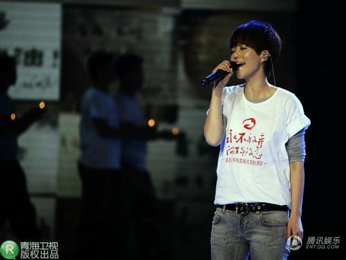 《永不放弃 向生命致意》青海卫视抗震救灾特别节目于19日19点40分揭开序幕,众多明星为公益赈灾一齐努力。成龙、李连杰、谭咏麟、李宇春、田亮、谭维维等国内知名艺人,以及湖南卫视主持人张丹丹、魏哲浩,以及煤矿文工团团长、著名主持人瞿弦和,用自己的行动为玉树抗震救灾献上一份力量。图为谭维维演唱。