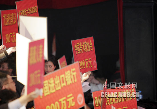 4月20日晚,由中宣部、民政部、国家广电总局、中国红十字会总会、中华慈善总会联合主办的“情系玉树 大爱无疆”抗震救灾大型募捐活动在北京隆重举行。募捐活动结束时,现场共募集到各类款项21.75亿元人民币。图为中国美术家协会向地震灾区捐款300万元。中国文联网 邱振刚 摄