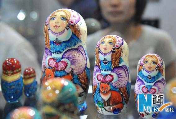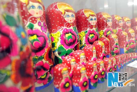 5月2日,俄罗斯传统工艺品套娃受到游客的追捧。新华社记者 王定昶 摄