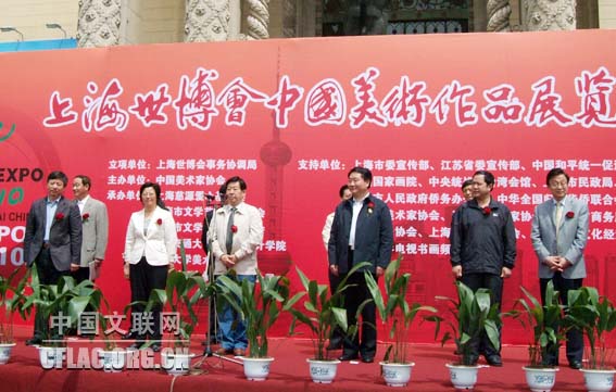 在上海世博会立项并冠名的“上海世博会中国美术作品展览”5月7日在上海展览中心举办。中国文联副主席、中国美协主席刘大为,中国美协分党组书记、驻会副主席吴长江,上海市委宣传部副部长宗明等领导与相关单位代表出席开幕式。