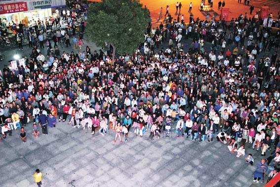 作为首届中国农民艺术节配套活动之一的全国“三农”题材小戏小品精品展演活动,6月4日晚在昆山淀山湖镇精彩亮相。中国文联国内联络部副主任周雪静,江苏省文联党组副书记、副主席杨企鹏,江苏省戏剧家协会驻会副主席、秘书长杨丽娟,苏州市文联主席朱建华,中共昆山市委常委、宣传部部长杭颖,淀山湖镇人民政府镇长韩晓燕等出席活动并分别致辞。图为场外观众聚集在广场观看现场LED大屏幕转播。